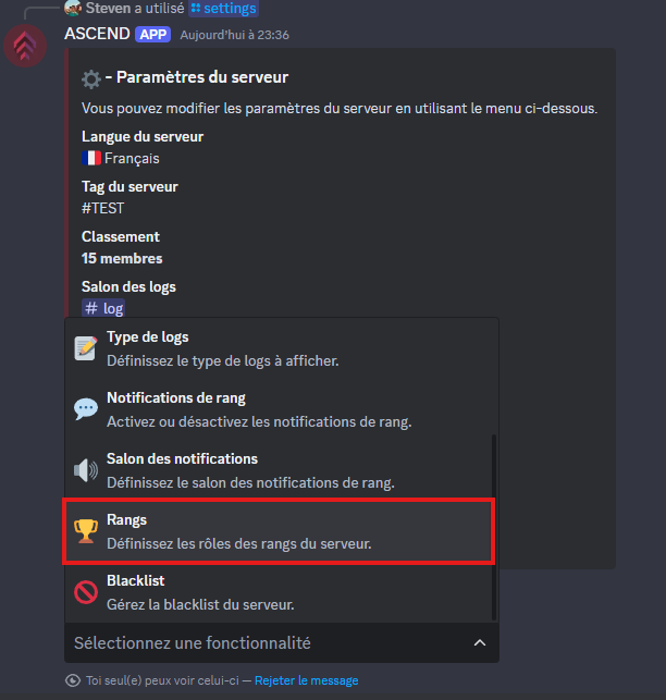 By default, the bot does not automatically create roles. To set up ranks, you need to run the following command `/settings > Ranks > Setup Ranks`